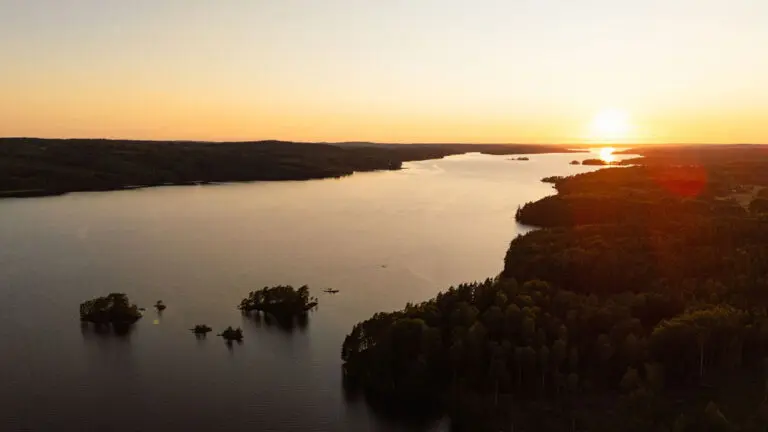 Im schwedischen Sommer scheint die Zeit für einen Moment stillzustehen. Die Sonne sinkt quälend langsam hinter den Horizont, wodurch der Himmel und das Wasser oft stundenlang in tiefem Orange und Lila leuchten. Es ist der Moment, in dem der Wind sich legt und der See sich in einen perfekten Spiegel verwandelt.